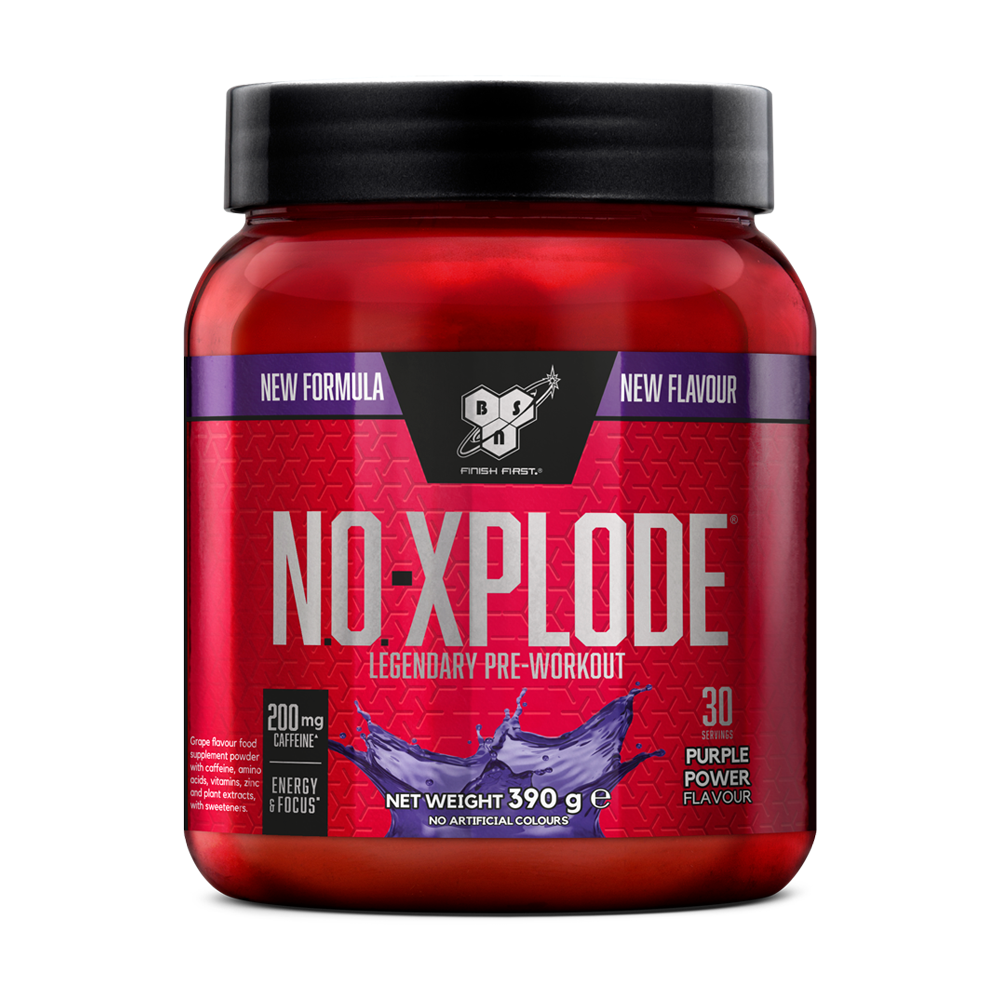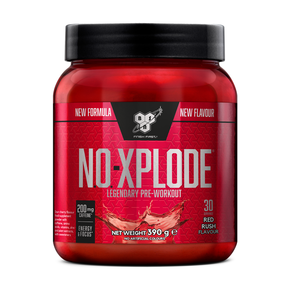 Legendary premium pre-workout drink to improve your performance Explode into action with the latest version of the legendary pre-workout drink from BSN. NO-XPLODE 3.0 is packed with more than 20 active ingredients, including caffeine to increase endurance and alertness, and creatine to increase high-intensity performance. Vitamin B6 and B12 help to reduce fatigue while choline supports fat metabolism. NO-XPLODE 3.0 also includes premium ingredients CarnoSyn� and CAPROS�. Available in a range of great-tasting flavours. Caffeine enhances physical and mental performance Caffeine, one of the most popular pre-workout ingredients, is commonly found in tea and coffee and is proven to increase your endurance performance. To get the best results take 3 mg/kg bodyweight at least one hour prior to exercise but make sure you avoid other caffeine for at least 24 hours beforehand. Combined, the mental and physical benefits of caffeine give you the energy, focus and drive to succeed!